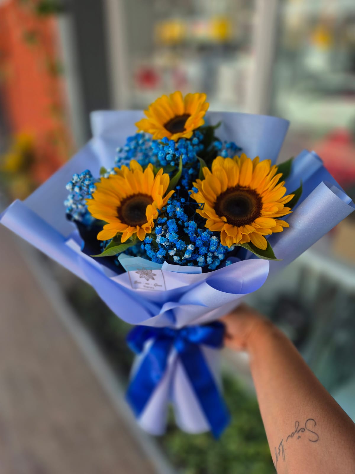 Um lindo ramalhete com girassóis para alegrar o dia de alguém especial.