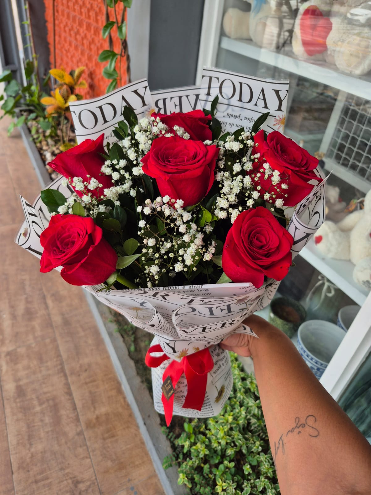 6 rosas vermelhas.
