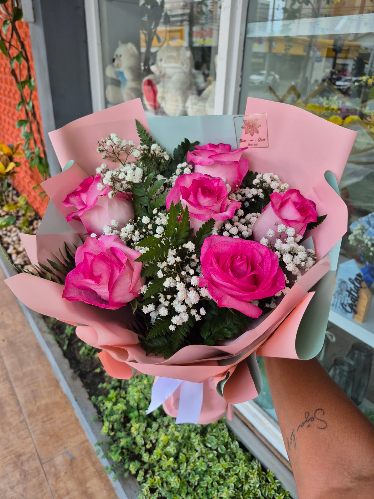 6 rosas cor de rosas.