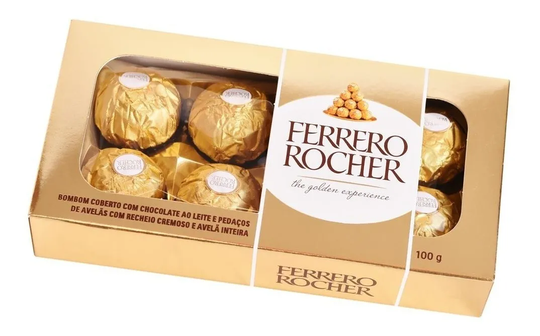 Bombons coberto com chocolate ao leite e pedaços de avelãs com recheio cremoso e avelã inteira (100g)