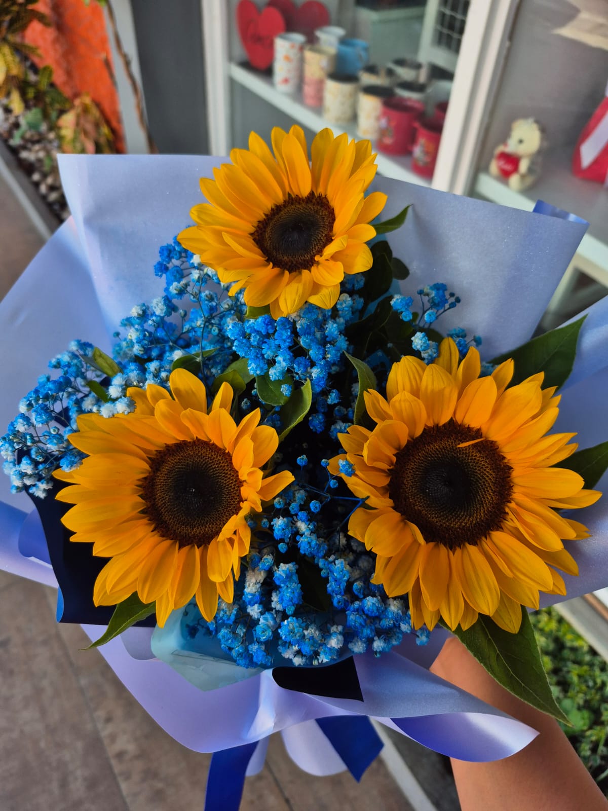 Um lindo ramalhete com girassóis para alegrar o dia de alguém especial.